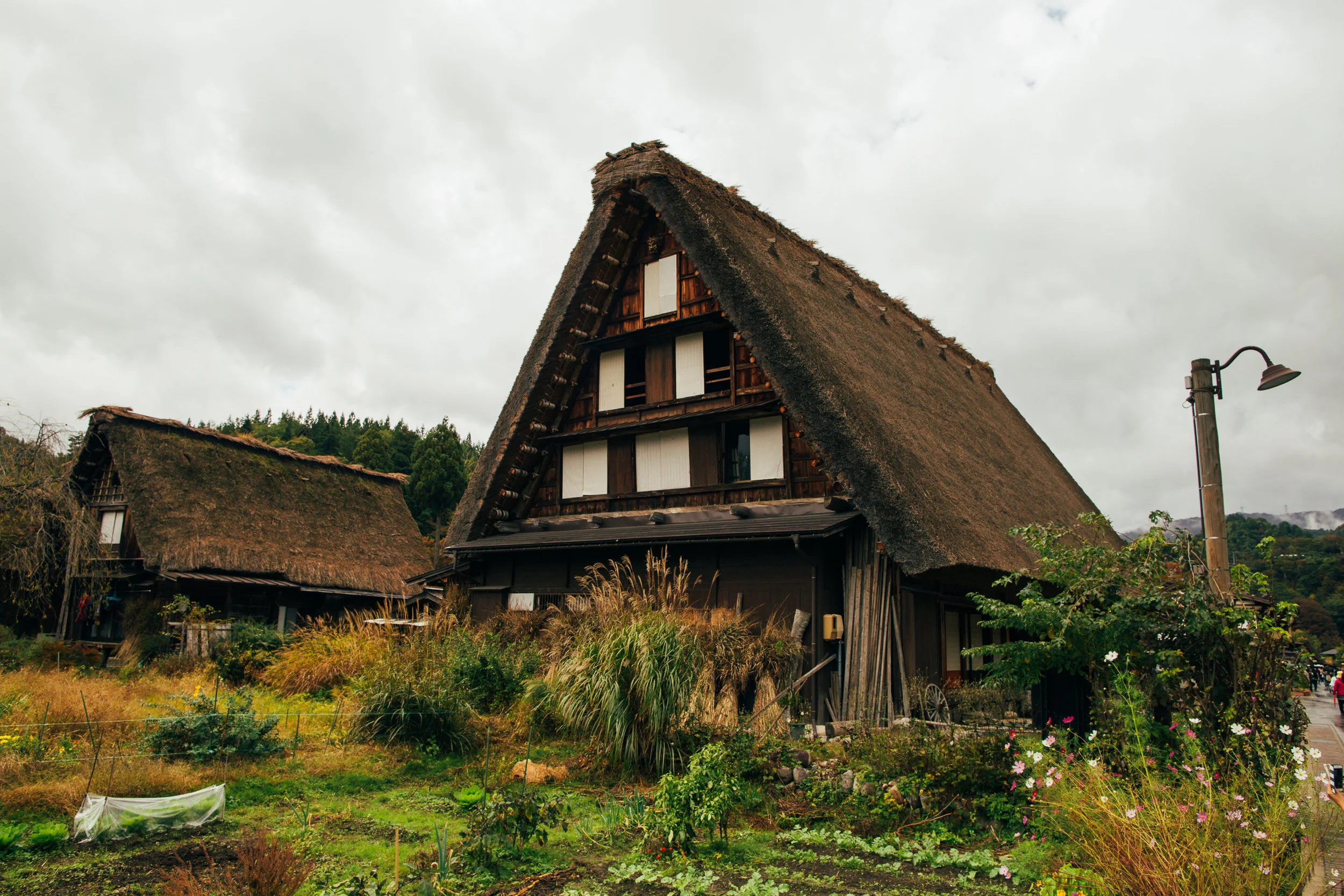 A private house. The roofs will actually feature slopes across various villages in the general region due to the varying amounts of snow they receive. These houses were traditionally farmers' homes so it is not surprising to find crops/plants being planted right next to the buildings.