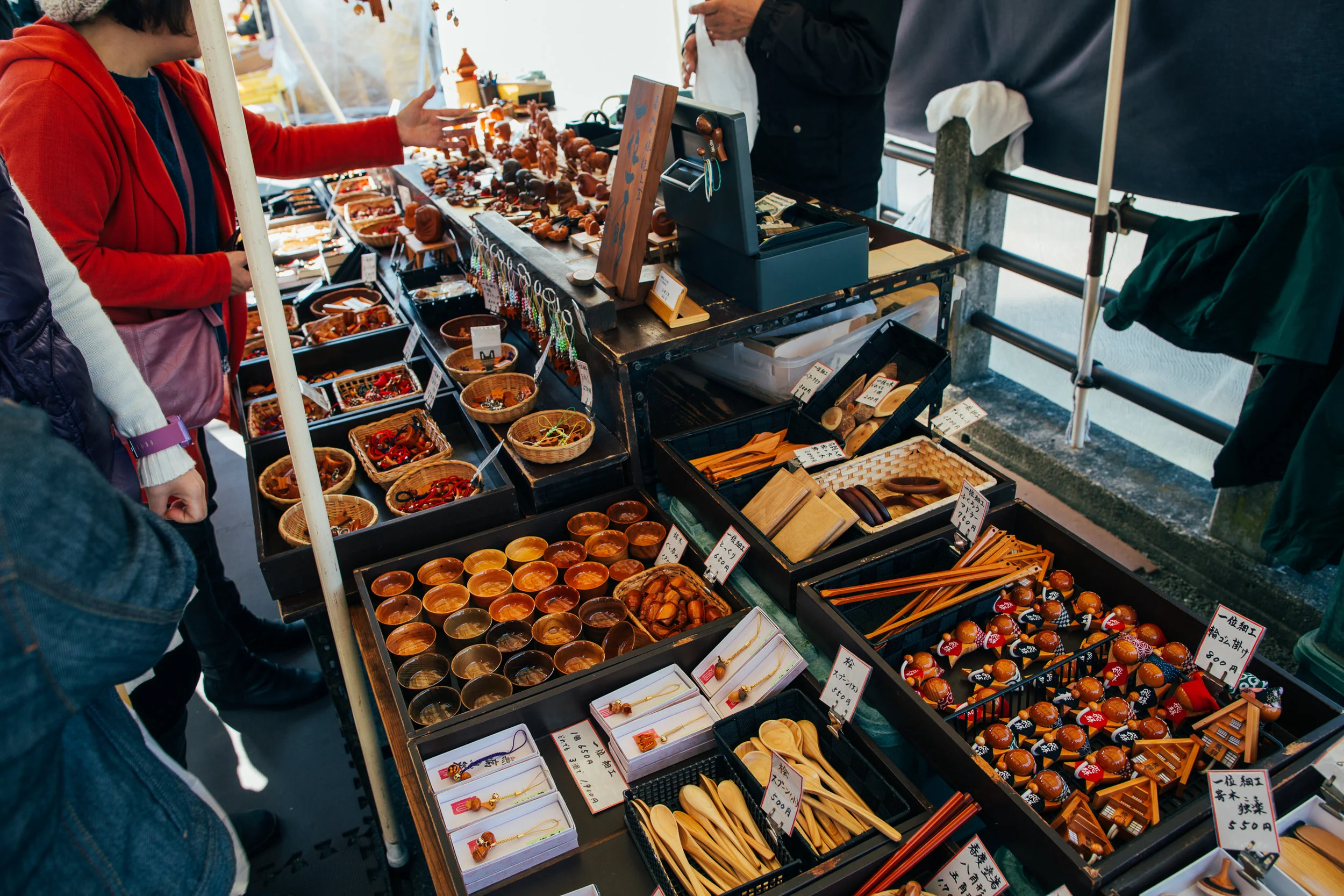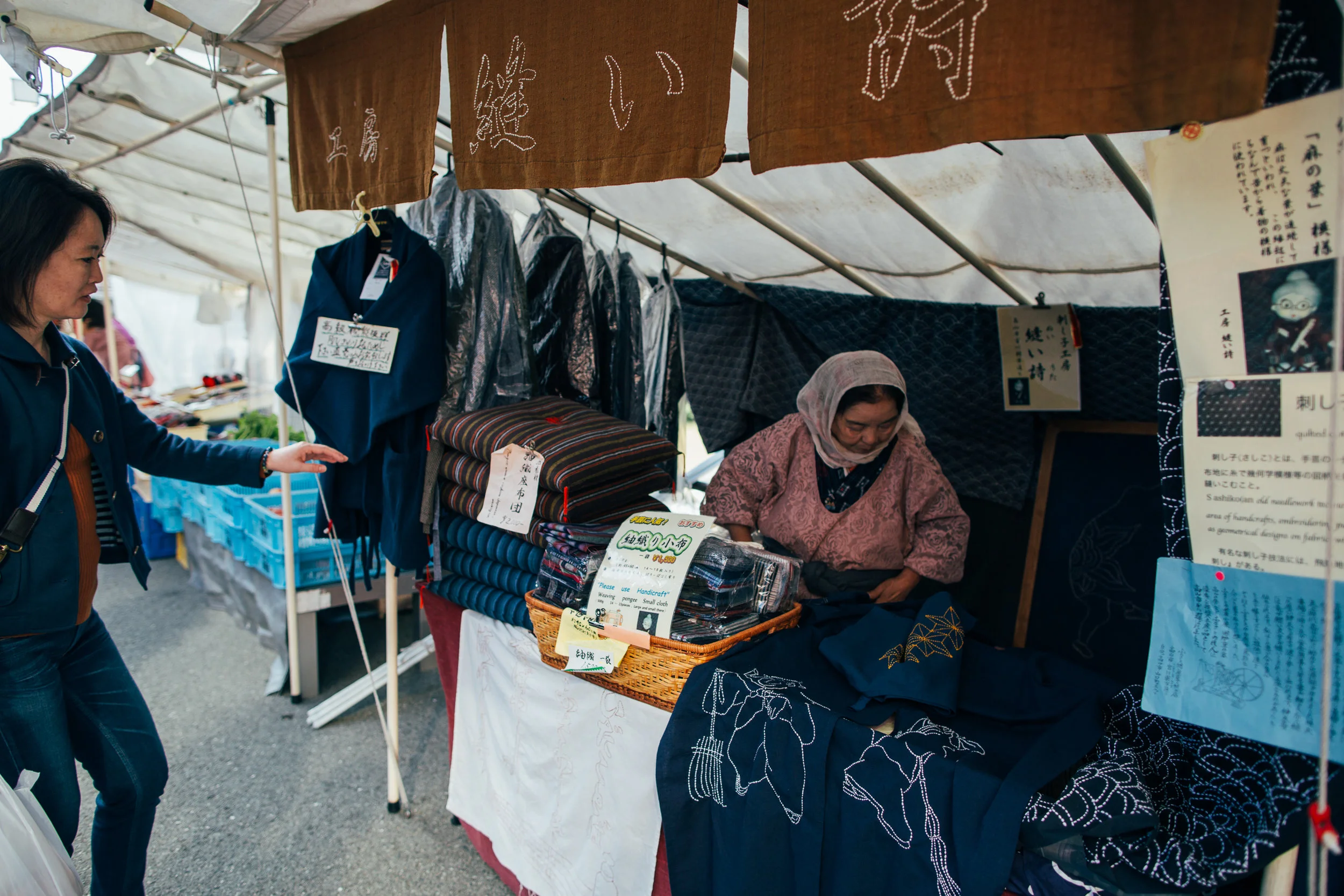 A vendor selling traditional Japanese robes with hand stitched designs. Not particularly cheap, but of course you are paying for the craftsmanship and skill.