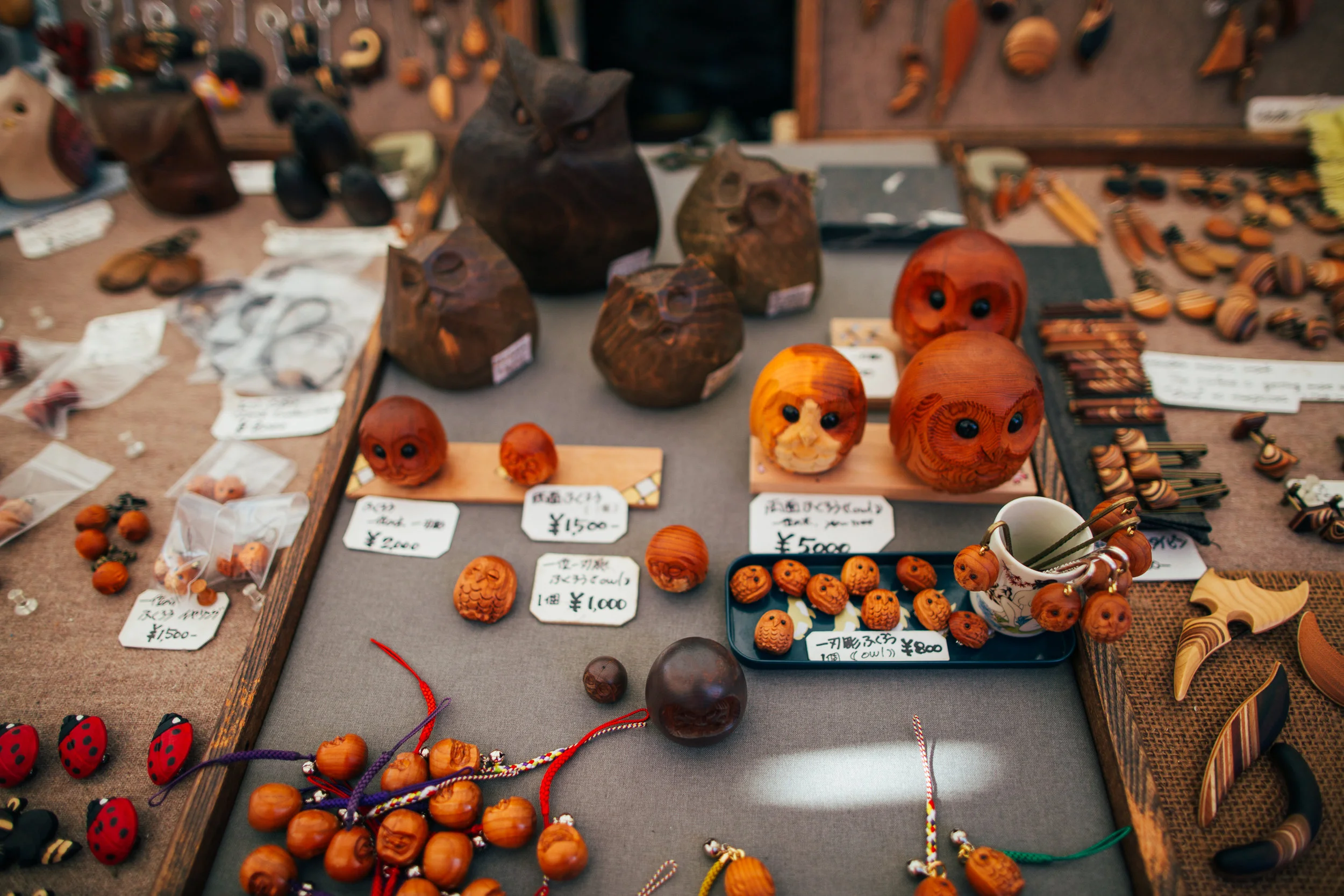 Ichii itto (carving from yew trees) is a technique originating from Takayama. The yew tree wood grows darker as it ages and develops a unique patina. Commonly found carvings are that of the owl (fukuro in Japanese) which are meant to bring good luck, as well as the daruma figures which are modelled after the founder of the Zen sect of Buddhism.