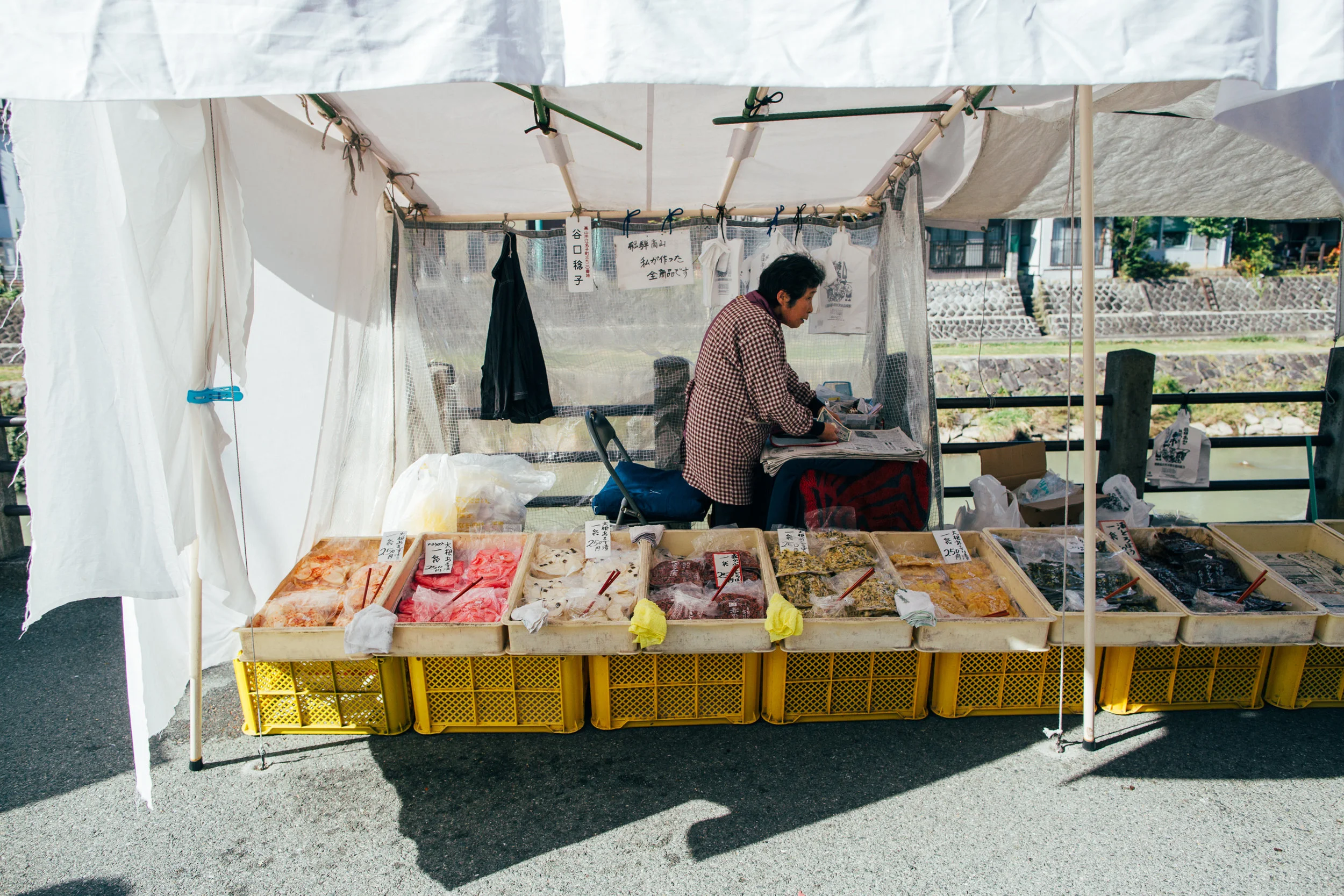 The Miyagawa morning market is basically a single riverside street that runs about a few hundred metres. The other morning market, Jinya-mae market, is located in the parking lot in front of the Takayama Jinya (the old government building, now a museum).