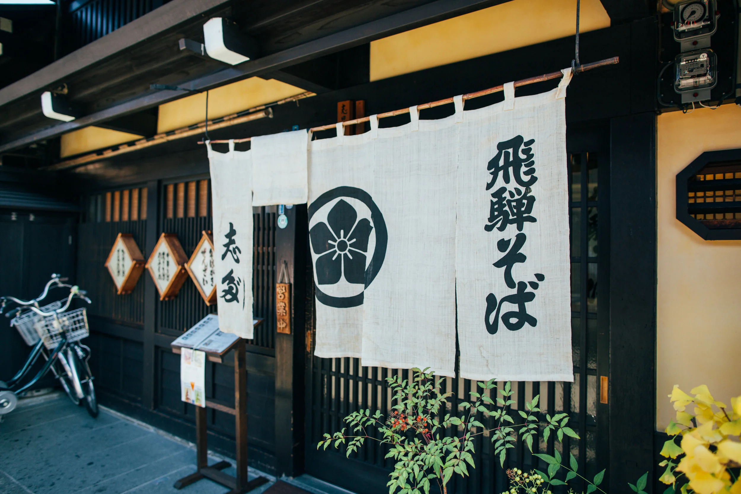 Shops in the old town of Takayama use traditional noren at their entrances. I think it's safe to assume that one segment flipped up means they are open for business.