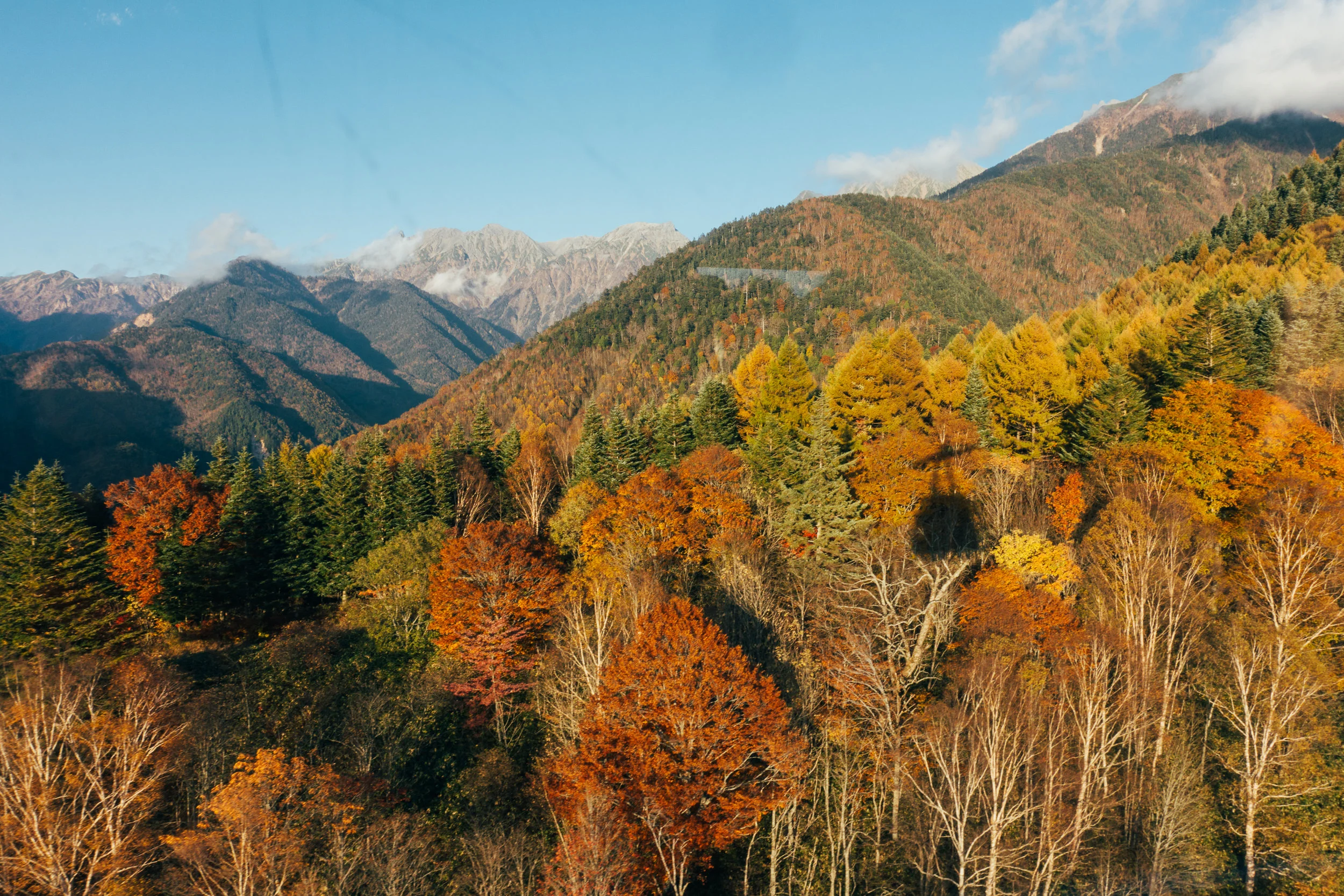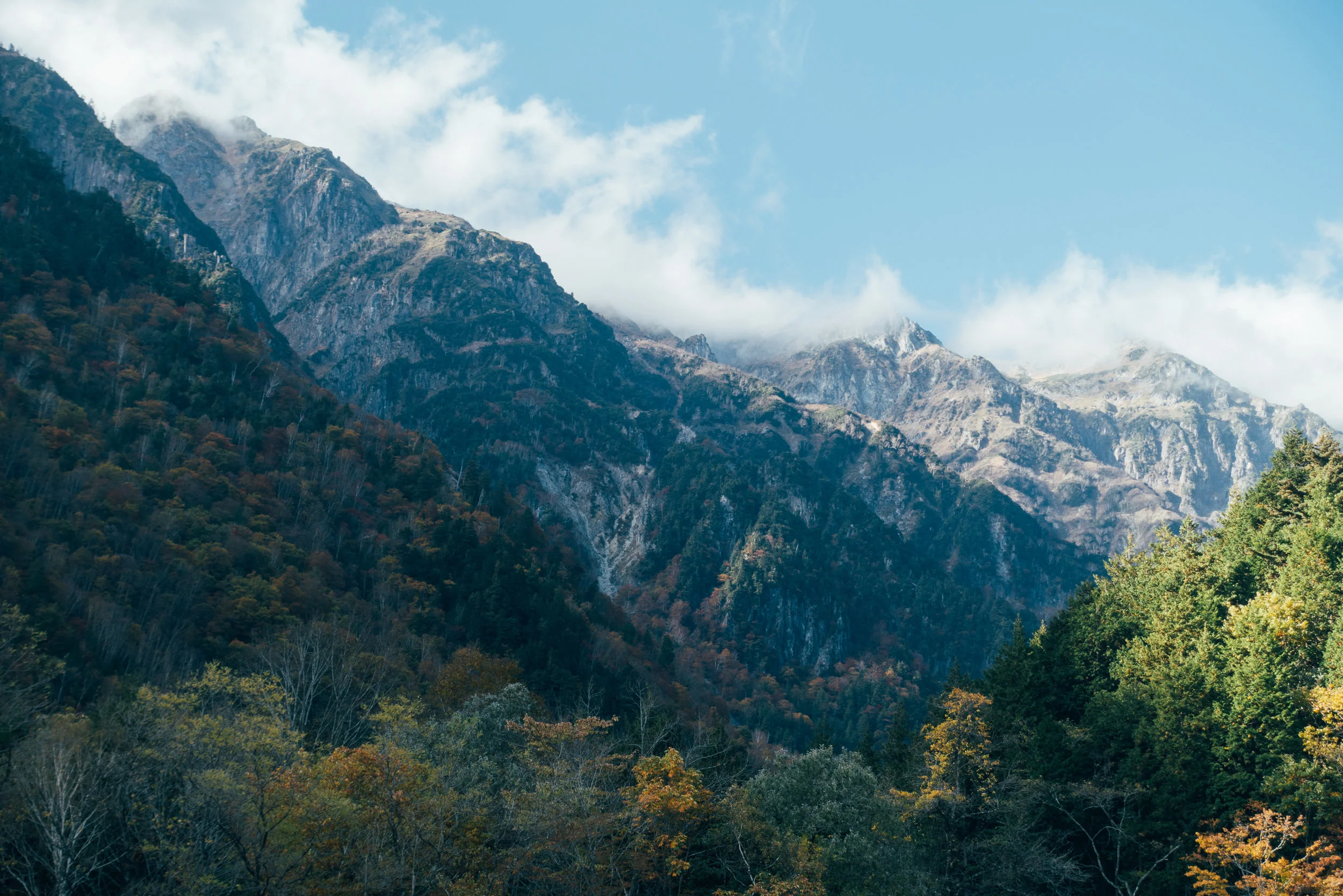 Taken at the base of Mount Hotaka looking up at the neighbouring peaks. The Shin Hotaka Ropeway is a cable car that takes visitors to the top of the third tallest mountain in Japan.